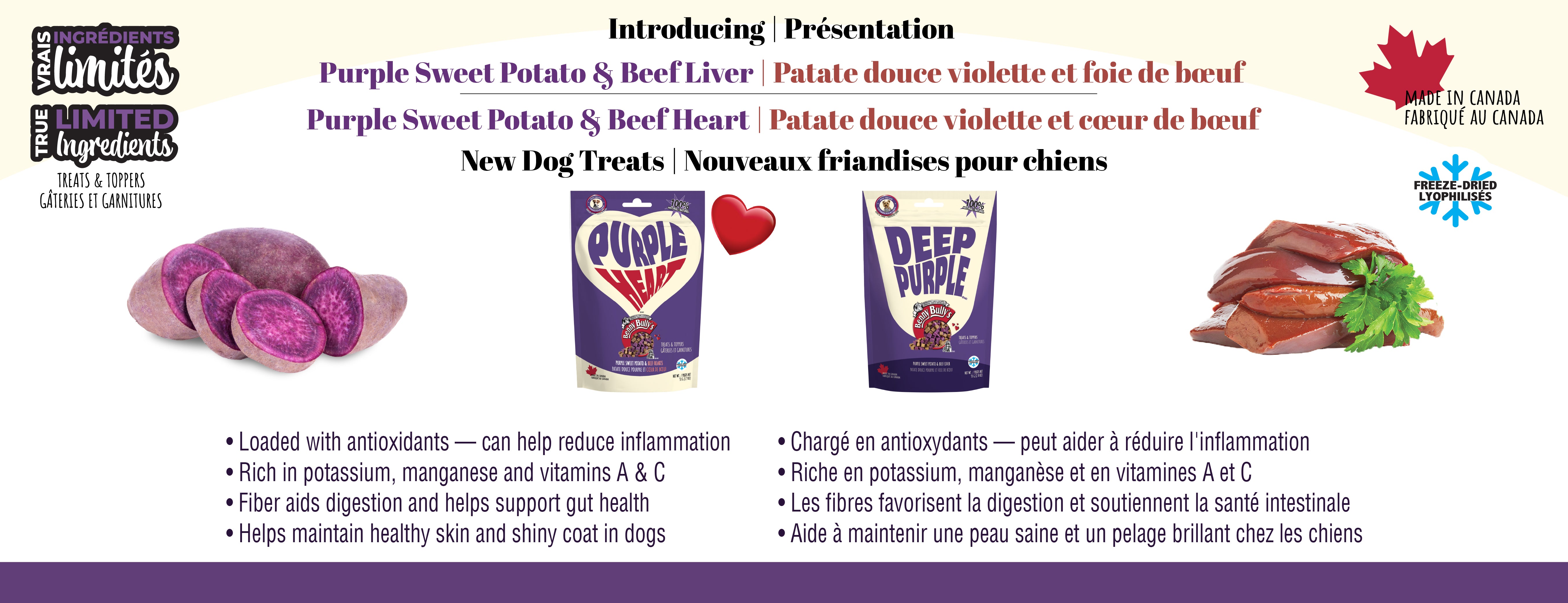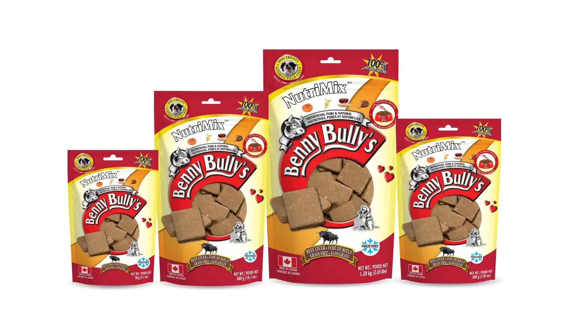 Fait avec du foie de bœuf, de la citrouille, de la pomme, de la banane et de la patate douce