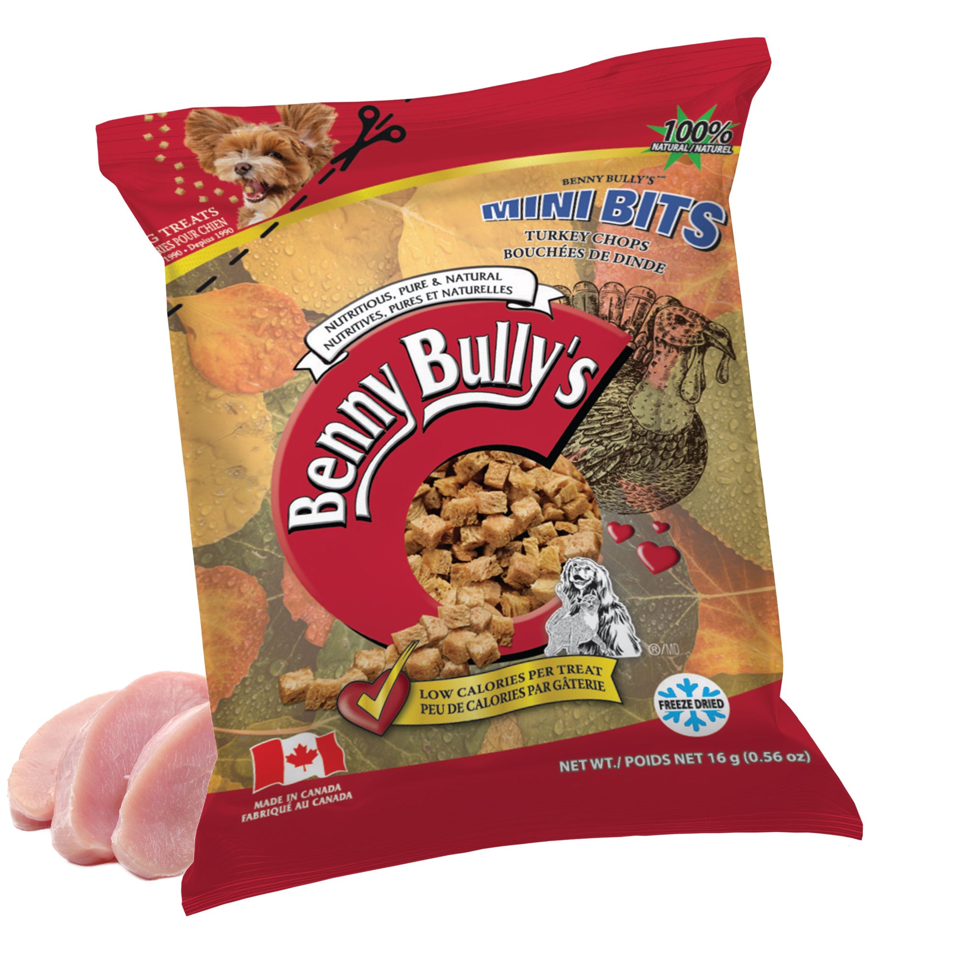 Treat your furry friends to Turkey Chops Mini Bits™ Pillow Pack! Made from human-grade, nutritious ingredients, these low-calorie treats provide essential nutrients for a healthy diet.